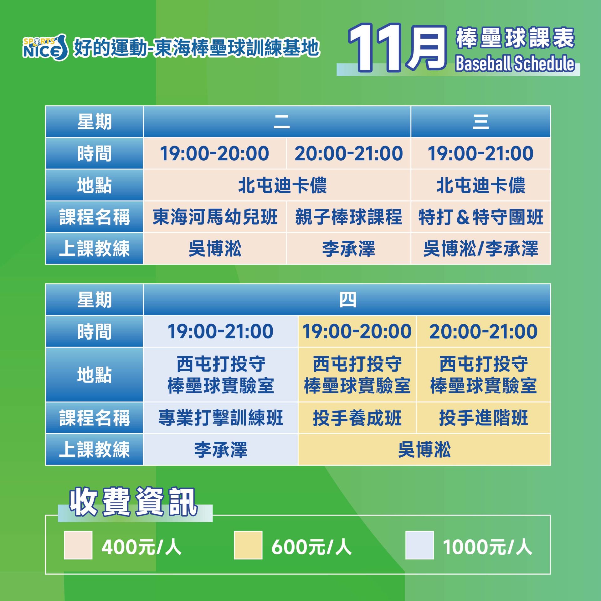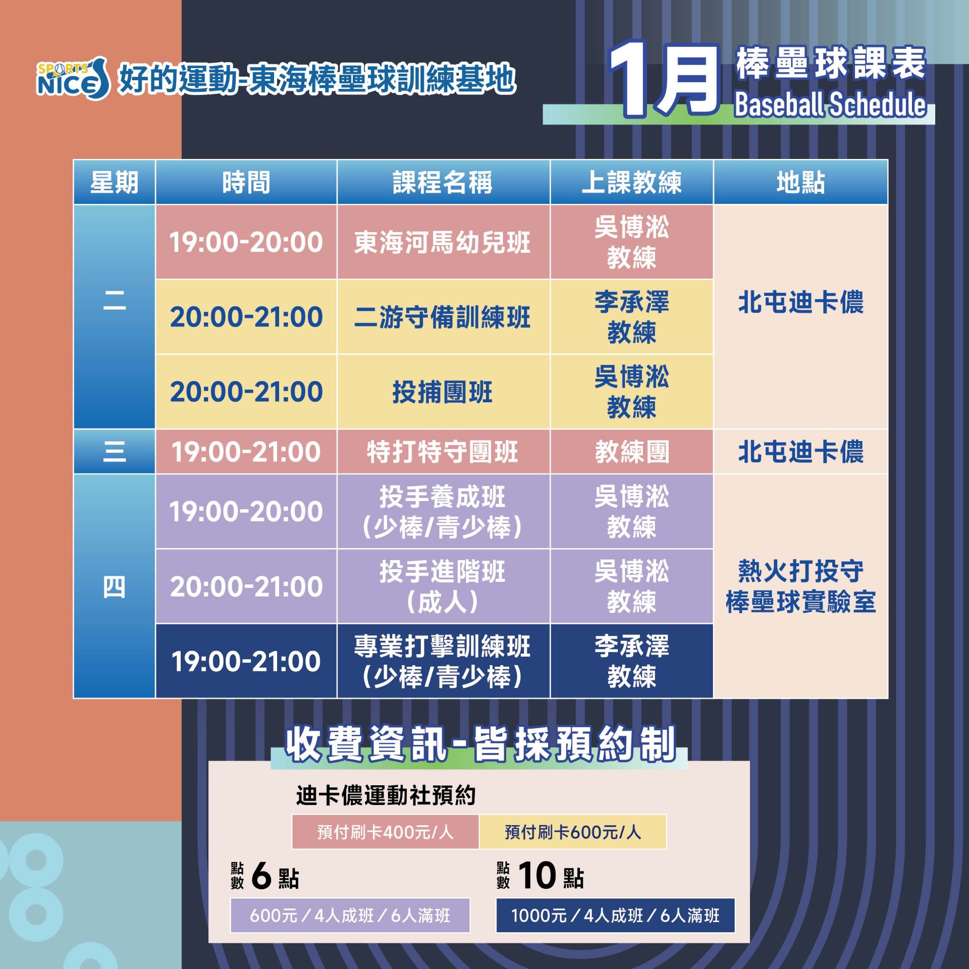 【課程地點:台中東海大學棒球場(台中市西屯區台灣大道四段1727號)】